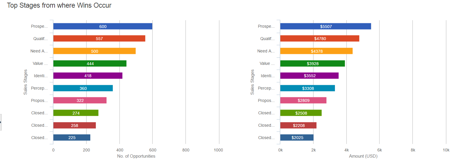 The below screen grab displays the number of sales stages of loss opportunities with count as well as potential.