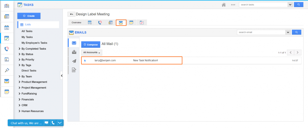 Keeping track of the tasks will always help you to analyze the progress of the work. Triggered emails help you to get engaged with the ongoing business process. When you create an email trigger for the task with criteria, the emails will be available under the Email tab on the overview page of that task which satisfies the condition on the criteria section. You don’t have to switch between the apps to view the triggered emails. Just open the task overview page and find it under the Email tab. Read More