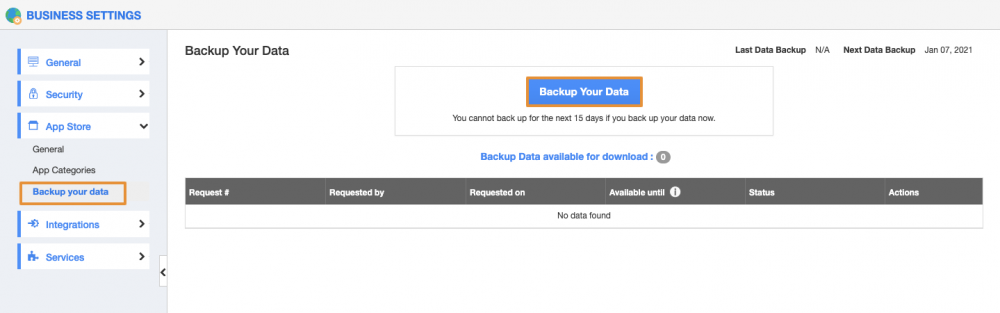 The key purpose of backing up data is to recover important files when there is a network crash or hard drive failure. Apptivo has implemented the “Data Back Up” option to access the backup of your records offline. By clicking on the Backup button in the Business Settings, you can simply backup your complete data. You can download the entire data from your Apptivo account in a Zip folder in a shot. You can also get email notifications during the initiation, cancellation, or completion of your backup process. Read more.
