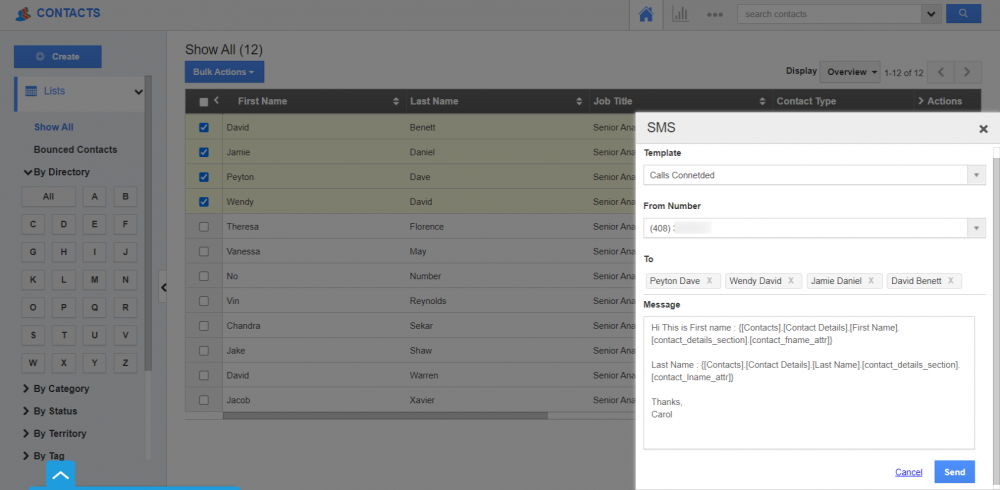SMS Campaigns in Contacts