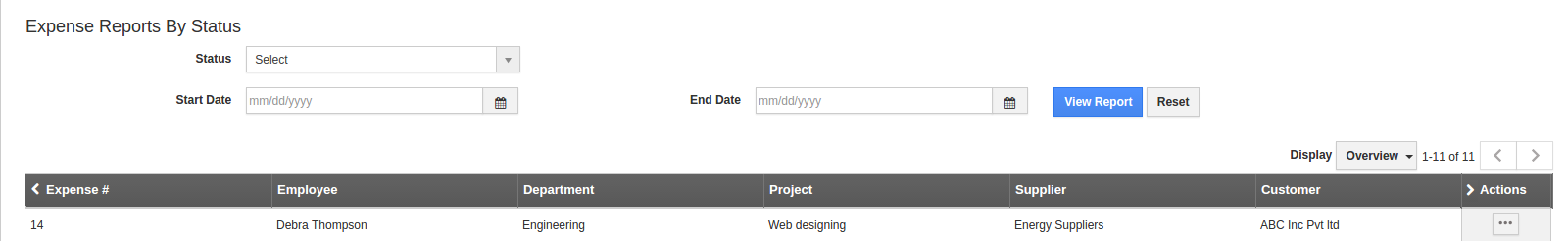The status for the expense report can be created and selected according to the specific criteria. So if you wish to generate the report with the particular status you can do the same by using this option.