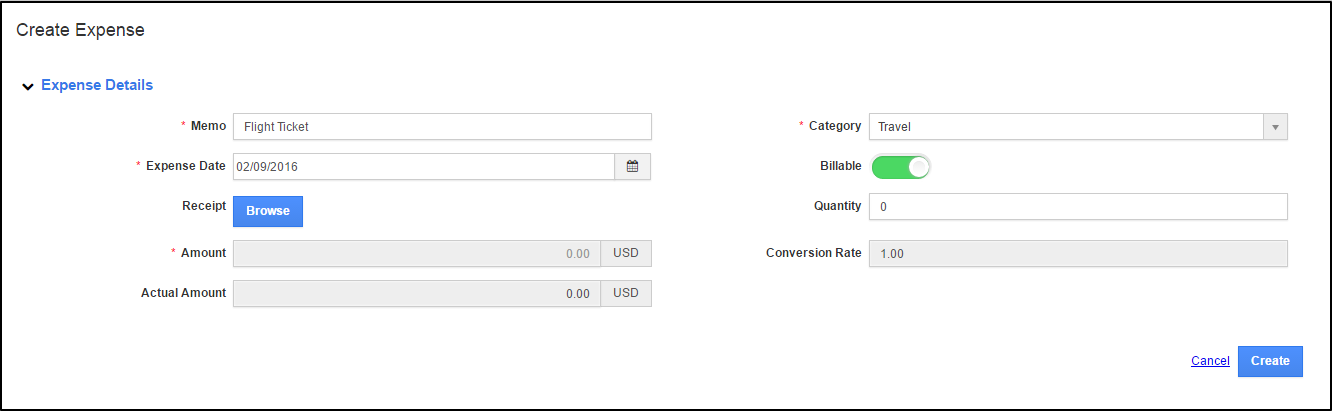 To save your Expense reports without any hindrance, you can set categories. Wherein you can create category for the expenses, also you can create the amount type like single amount, quantity based tracked expense and itemized expenses.