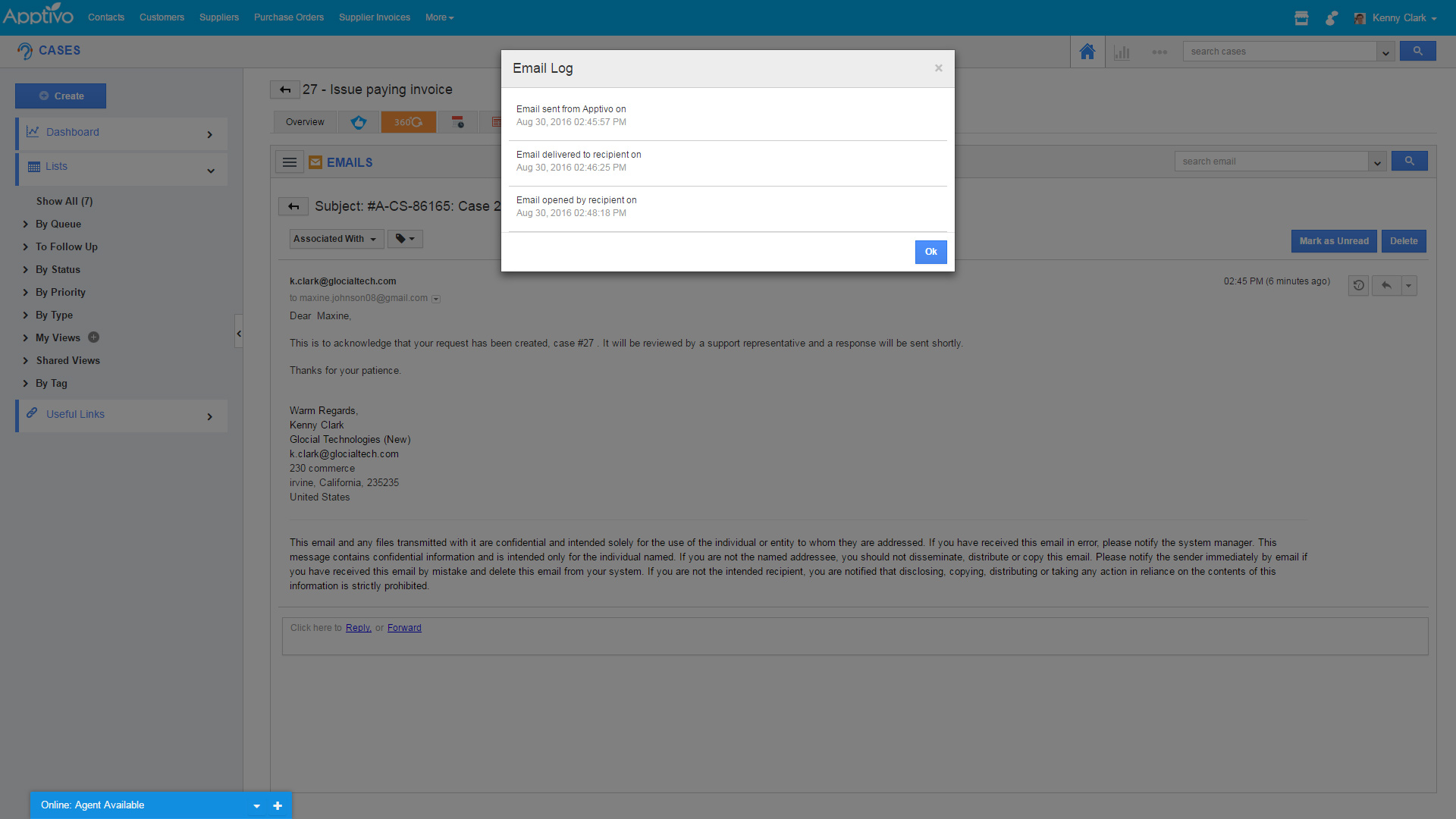Recently we launched our campaign management with open & click tracking on each email, and now we’re bringing some of that technology into every email in the system. Administrators can now enable email tracking from inside of the Email App settings area, and Apptivo will begin automatically tracking when emails are read by their recipients. This will include sales emails, support ticket conversations, invoices, quotes, or any other email you send from Apptivo.