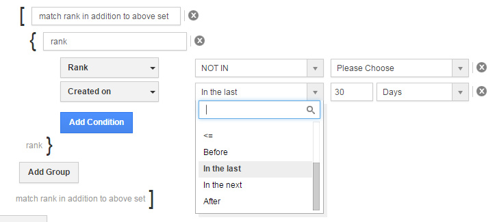 We’ve added a few new operators which help you create more complex reports than ever. The search process is a fusion between existing technology in our advanced search, and workflow criteria builder. The result is a very flexible way to group your data in any way required, here are the specific key changes: