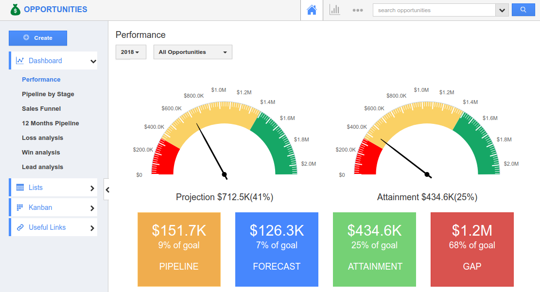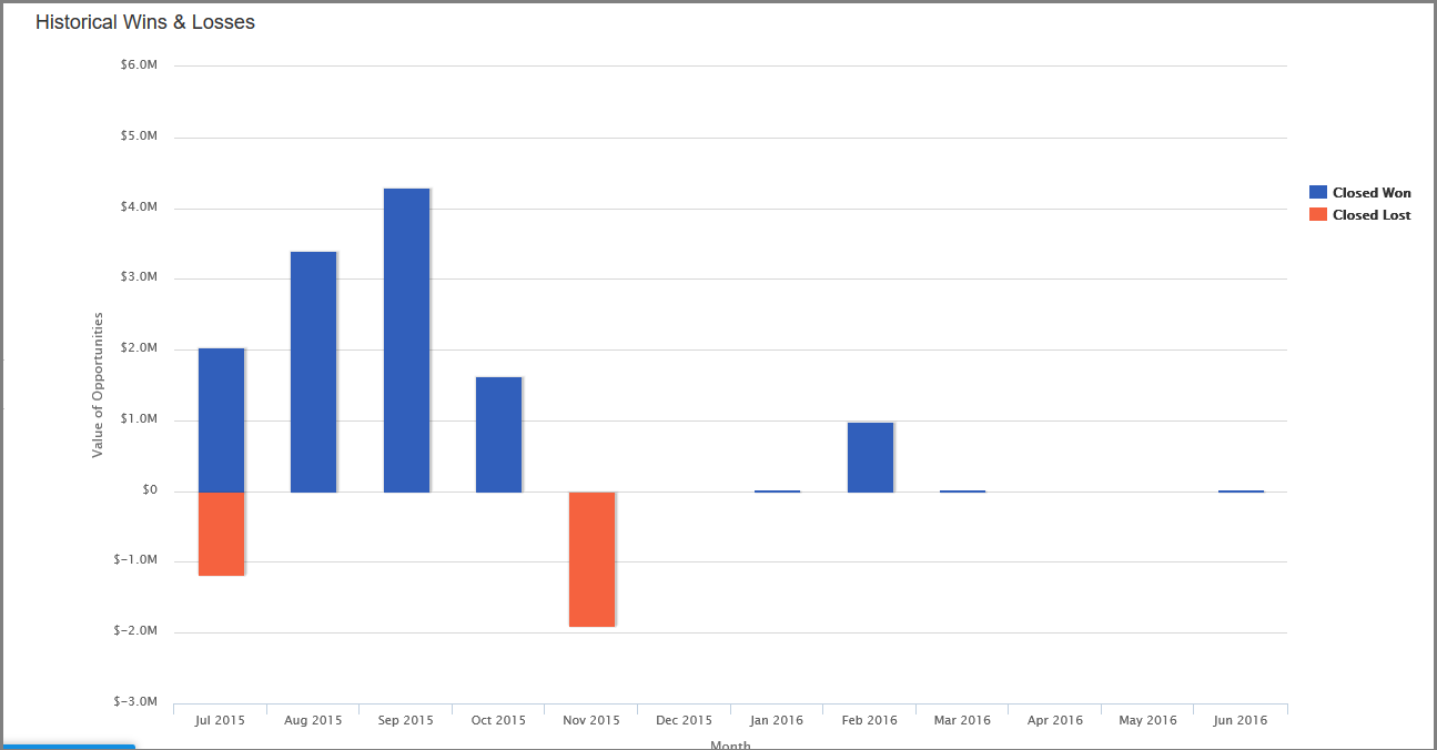 This historical wins and losses denotes the list of closed won and closed lost of the opportunities which are pipelined and forecasted by the sales managers. It will give you the value of opportunities with the revenue attained.
