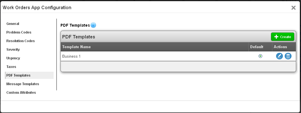 The next setting is PDF templates. Here you can generate customized templates that will be delivered to your customers. Click here to read more about creating custom work order templates.