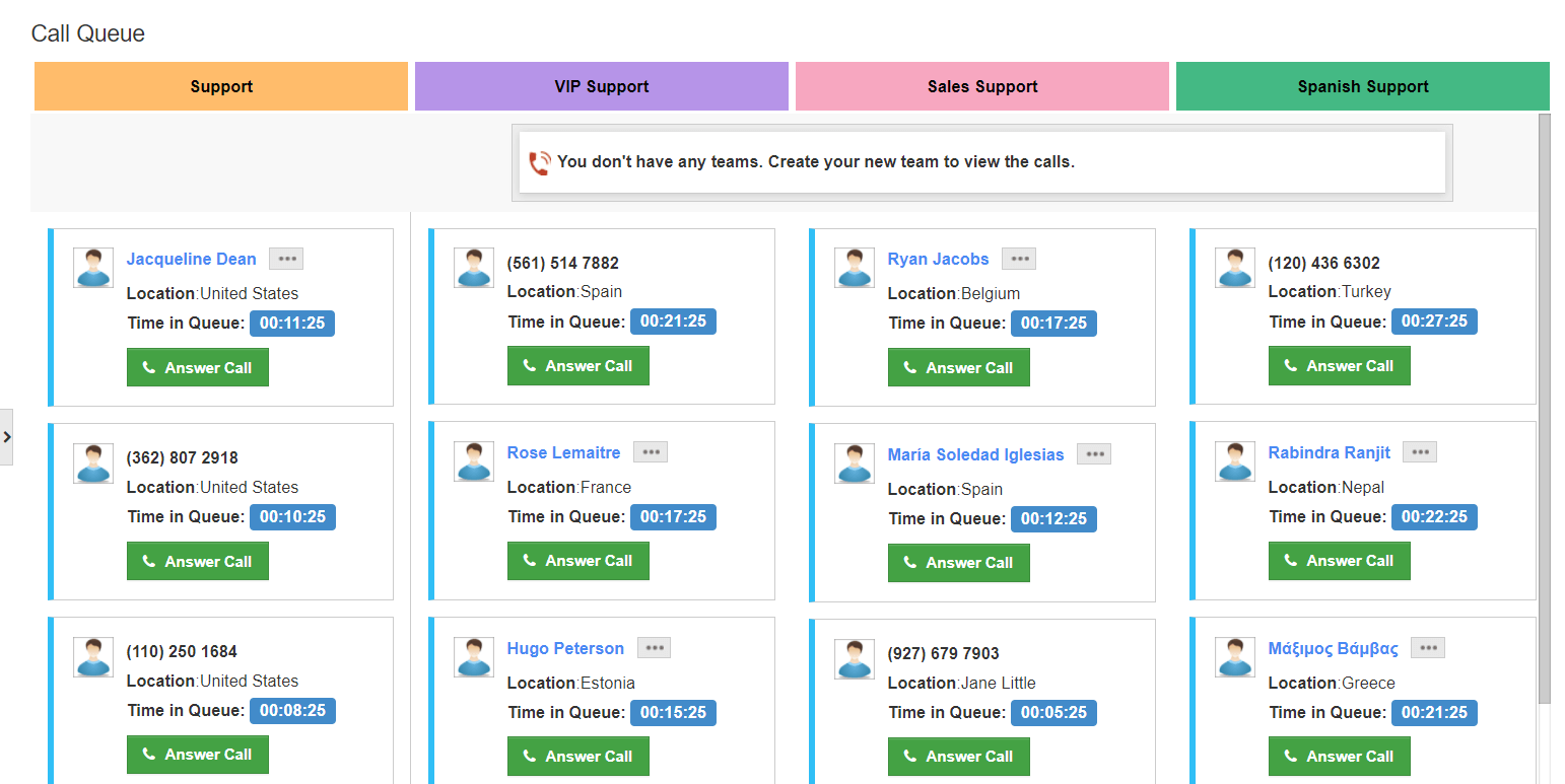 Audit the Work Queue and strategize the customer experience with a real-time tracking system. Observe and prioritize the live calls, calls in queue, and voicemails. Our advanced algorithm assigns the phone calls based on the idle time of your agents.