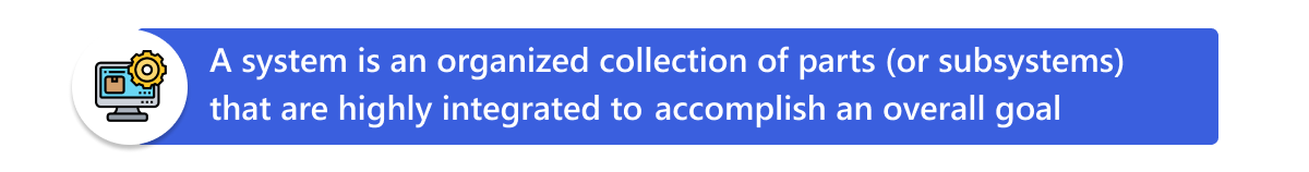 A system is an organized collection of subsystems needed to attain a specific goal. Many different inputs maketh a system which will help deliver the desired outcomes. Usually a system is made up of smaller subsystems. If one smaller sub system fails, the entire system fails to operate. The systems might vary from simple to complex, and there are numerous types of systems available in the market. Each system has its own processes, methods, inputs and outcomes. The nature of the system is systematic and if any part or activities in the system is misaligned, it would cause problems to the entire system as a whole.