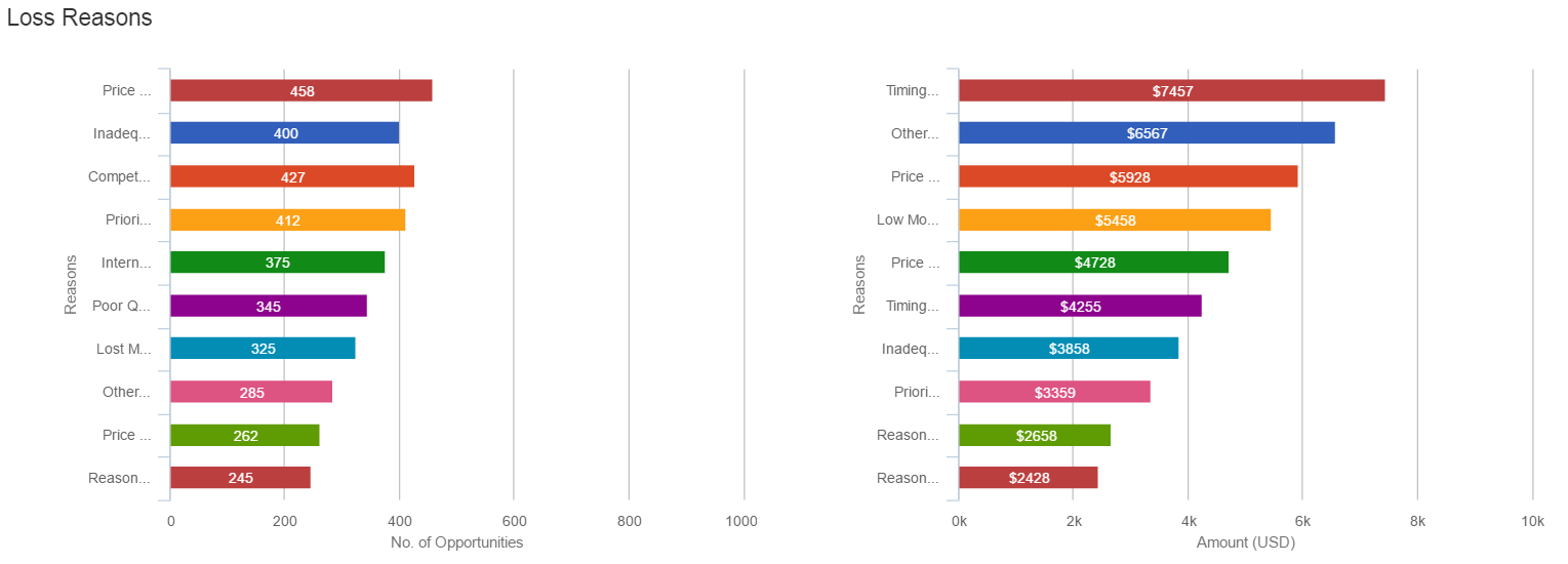 Here, you can see the loss reasons of opportunities with count as well as potential.