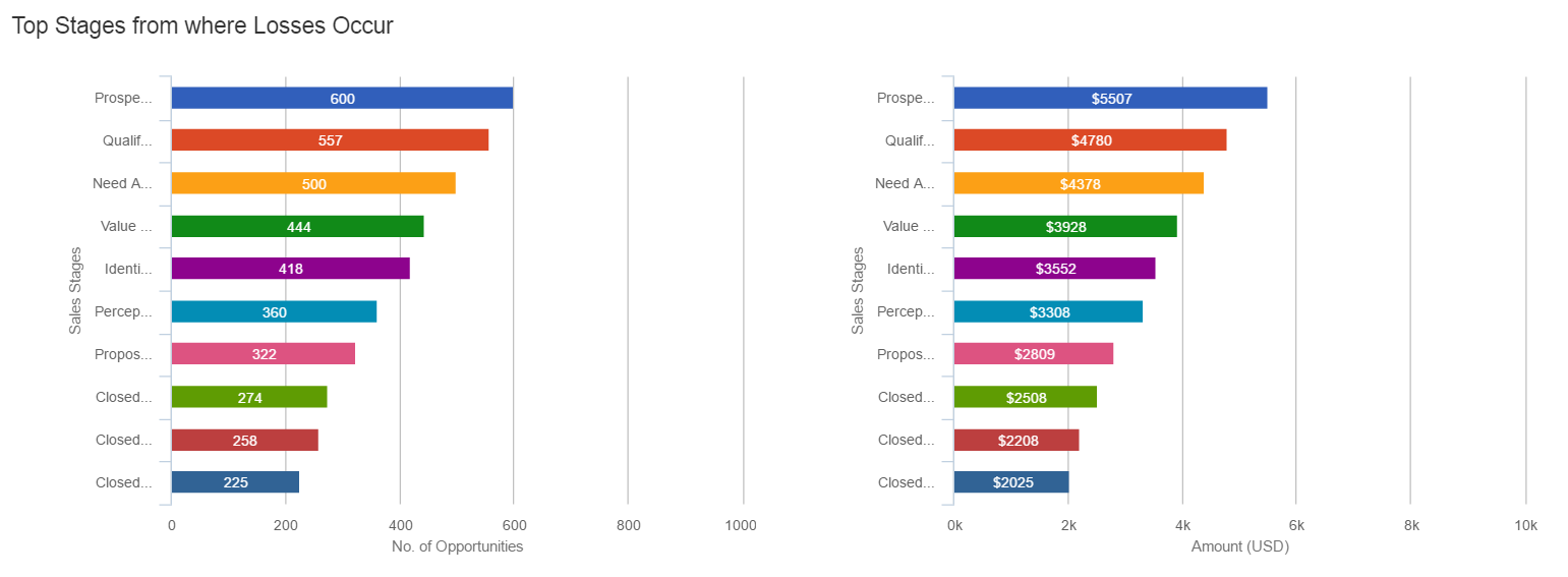 The below screen grab displays the number of sales stages of loss opportunities with count as well as potential.