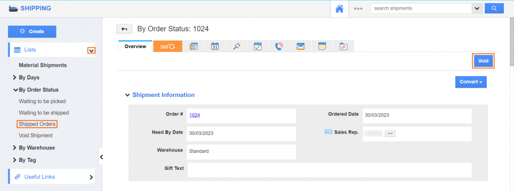 Void Shipments in Apptivo: