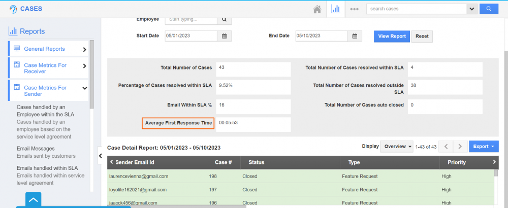 In the end, the ultimate goal of any business is customer satisfaction. The lower the first response time is the higher the customer satisfaction. Now you can track the first email response time of a case, thereby analyzing the response time of your employees to emails regarding customer issues or requests for your services. Along with that, you can also get Average First Response Time, to plan ways to improve the service of your business. Learn More