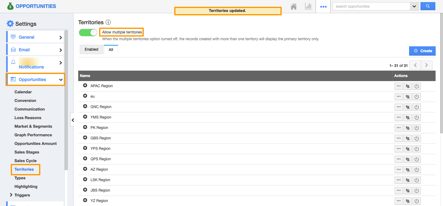 - Introduced Multiple Territories for Opportunities, Contacts, & Leads