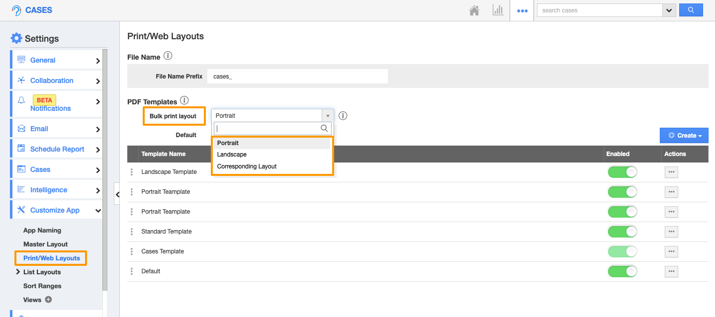 We have introduced the Bulk Print Layout in the Cases app of Apptivo to set the layout for the bulk Print PDF feature. Print PDF in Bulk Actions helps in printing the selected cases records in a single PDF file based on the cases templates. With this update, you can customize the Bulk Print Layout as Portrait, Landscape or Corresponding Layout. By selecting the Portrait, all the cases records will be printed on the portrait mode, even if the landscape template is selected in any of the records. Similarly, it will work in the Landscape mode. With the Corresponding Layout, the cases will be printed based on the individual templates of the cases. For example, the selected cases have both portrait and landscape layout templates, the downloaded printed file has both the layouts based on their own templates’ mode. Read more.