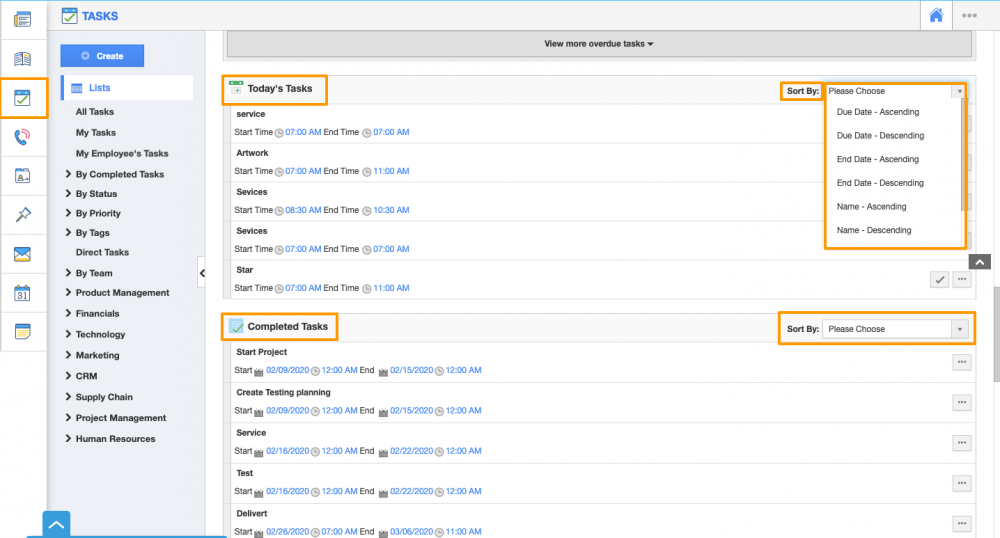 Apptivo Tasks app enables you to monitor and manage all your tasks activities within a single application. Having a sorting order ensures better navigation and easy retrieval of information as per your preferences. Now, we have introduced the Sort By option in the List View of the Tasks app. This enables you to apply the sorting of overdue tasks, upcoming tasks and completed tasks on the basis of the due date, end date or name of the tasks. It also lets you organize tasks according to your preferences in ascending or descending order. By applying the sorting, the tasks will be rearranged based on your selection. Read more.