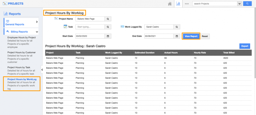 - Project Hours by WorkLog Reports in Projects