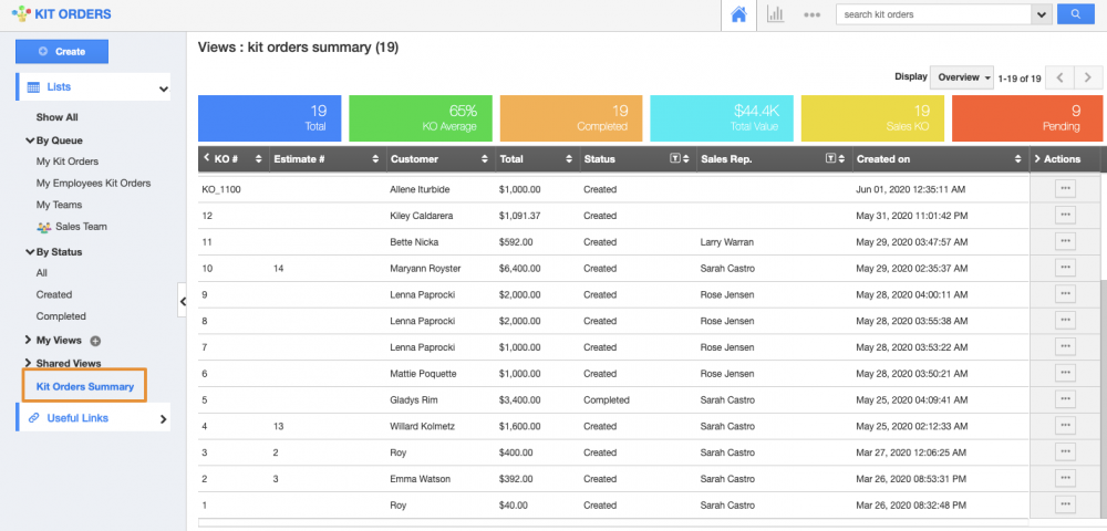 The Summary Boxes in Apptivo helps you to easily get the count, sum, or average of the filtered records based on specific criteria. This significant feature is now extended to the Timesheets and Kit Orders App. In the View section, you can select the view to customize the summary box and set the criteria for it. You can also customize the summary boxes according to your preference of colors. It allows you to add a maximum of 6 summary boxes per view. Read more.