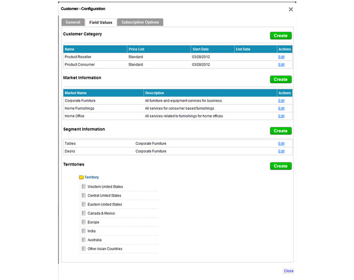1. To make browsing your customer list easier, Apptivo allows you to categorized each customer record.  Here you have the option to edit/disable an existing category, or create a new category that can be assigned to any customer.  To disable a category, set the “End Date” field to the current date.