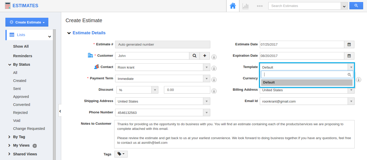 When creating a new record, your “Template” dropdown will no longer show the old templates. If you find your old options missing, follow the next steps to create a new template.