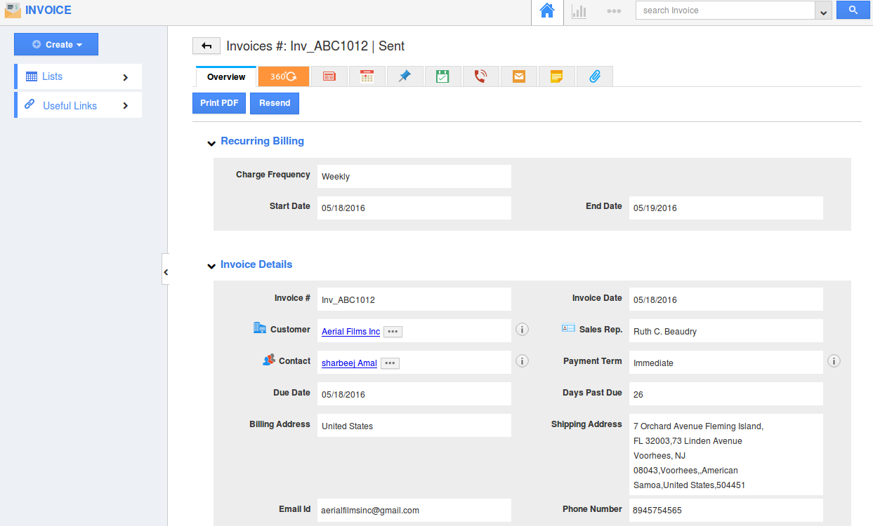 Owning a small business often means you need to send invoices on a repeated basis. Users can send recurring invoices to the customers that are created on a pre determined schedule, using the Apptivo’s online recurring billing system. Recurring invoices work with your schedule to make sure the invoices are paid on time, every time.