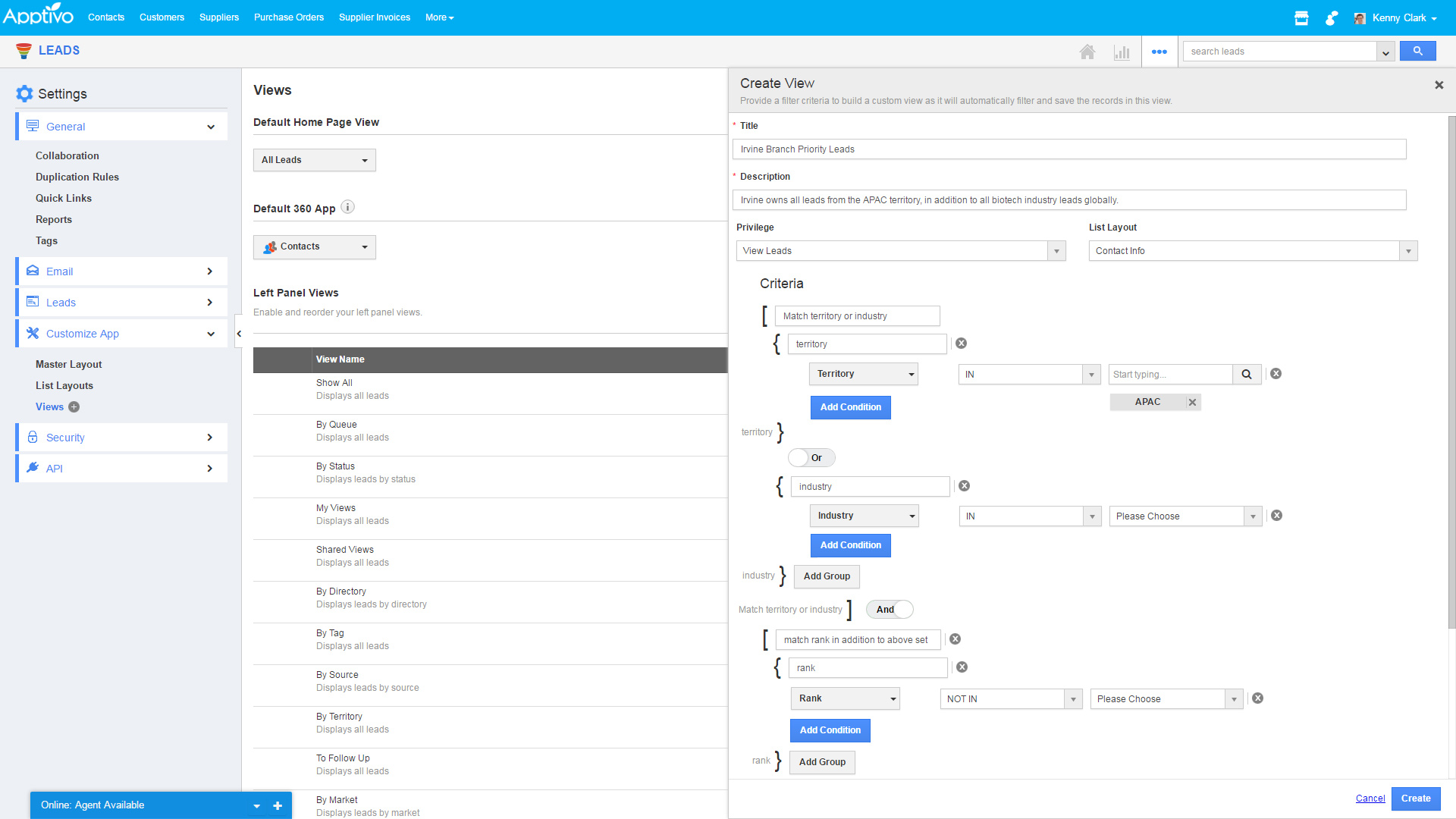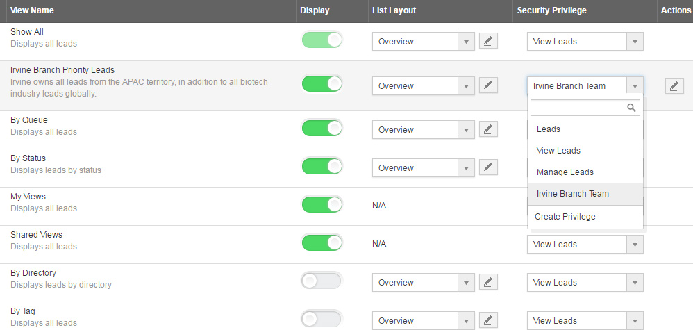 A few months back, we introduced a new “View Builder” tool into the Cases App, and we’ve received very positive feedback. This release we introduced the same feature into our Contacts, Leads, and Opportunities Apps (customers will come next release). This feature is available only to administrators, and appears as part of the existing “Views” settings.