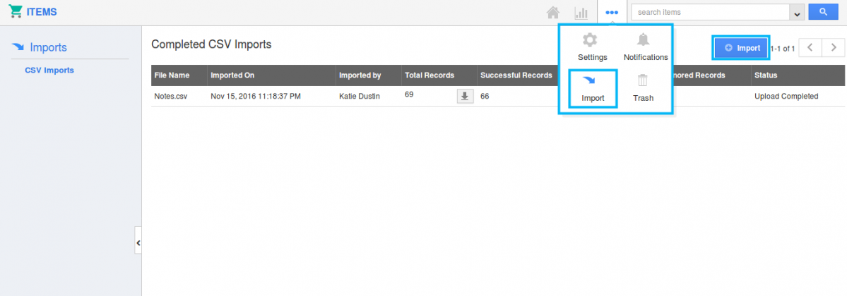 - After mapping the all fields as shown in the below instance, hit the “Import” button to import records.