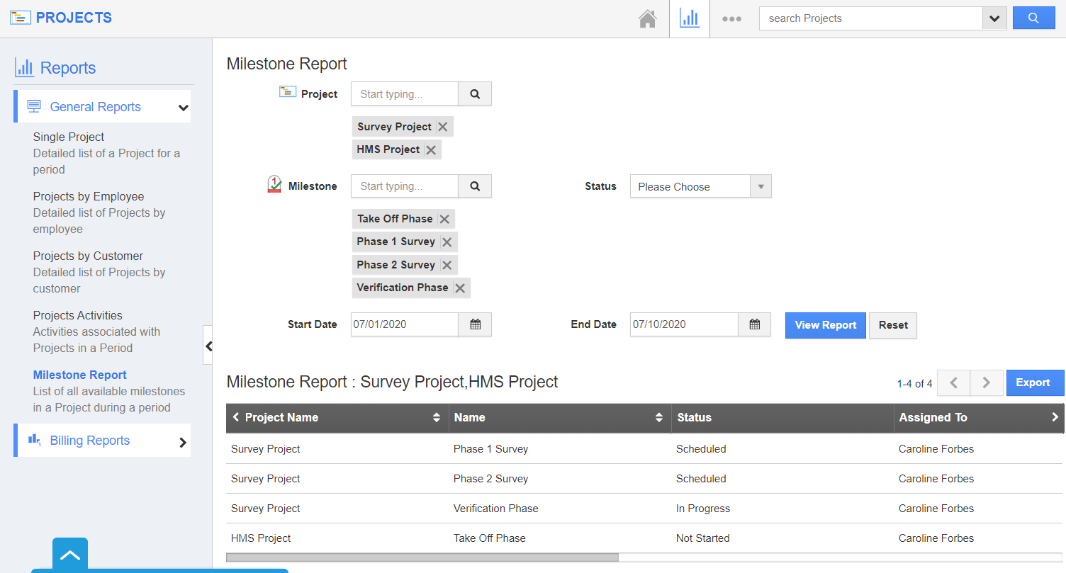 - How to generate Milestone Reports in the Projects App?