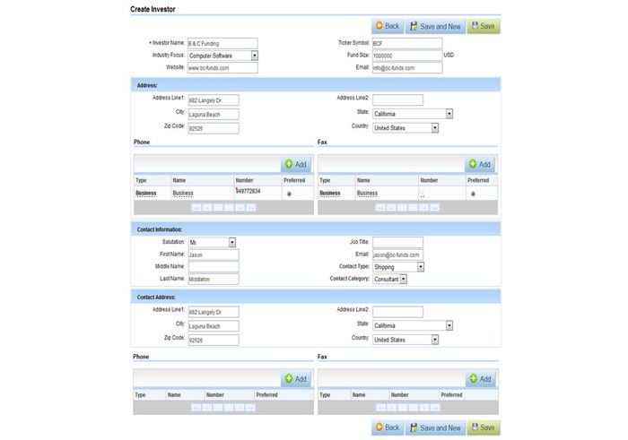 When creating an investor, keep in mind the information you enter will be related to the business entity providing the investment, not the individual. At the bottom of the creation page, you’ll be asked to enter information for your primary contact for this investor. Back to Getting Started page. How do I Create a new…